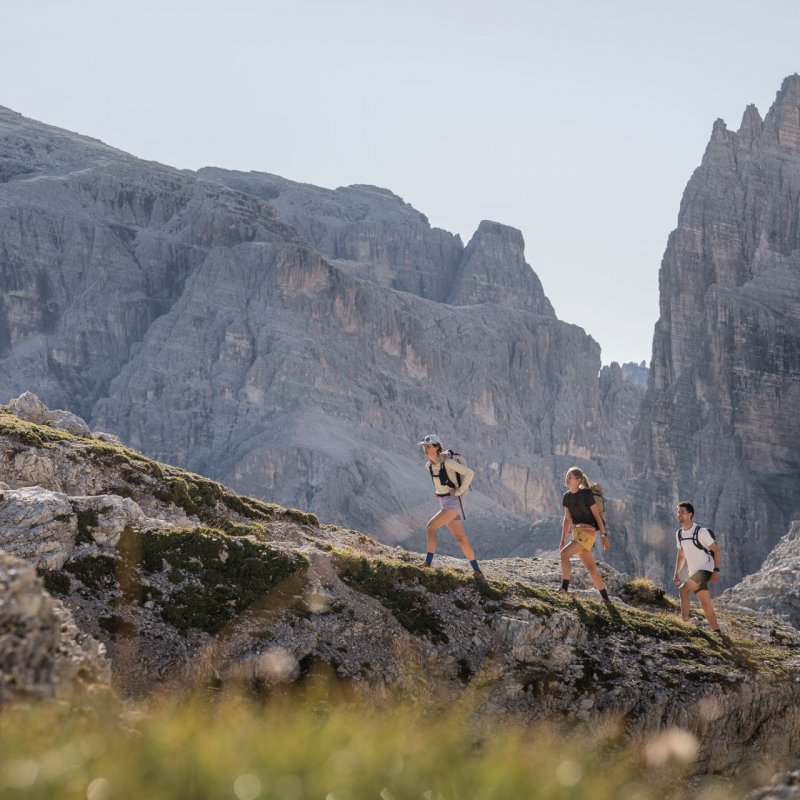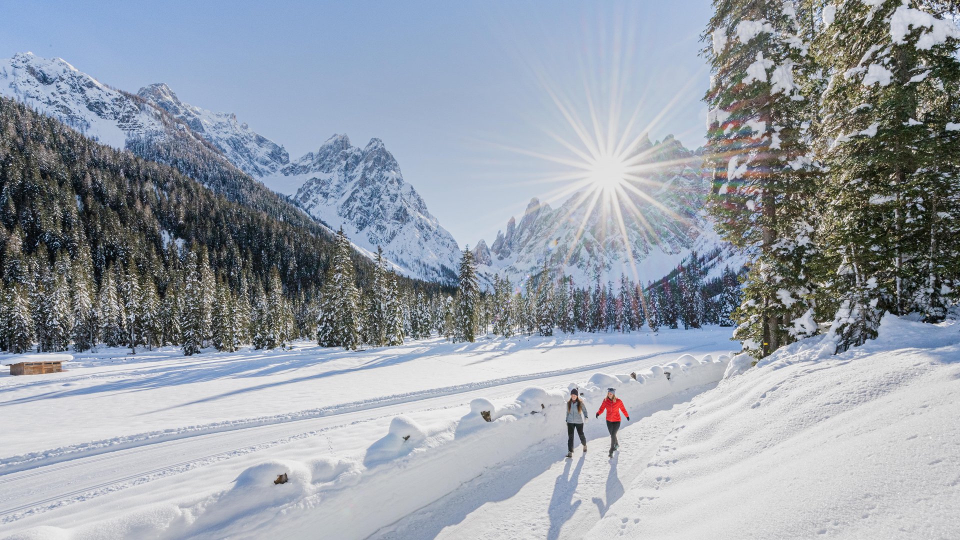 Zum Greifen nah, im Sommer sowie auch im Winter - die Gipfel der Sextner Dolomiten. Das malerische Fischleintal ist im Sommer ein idealer Ausgangspunkt für zahlreiche Wanderungen und Bergtouren im Herzen des UNESCO Welterbe Dolomiten und der schnellste Zugang zu den Drei Zinnen.