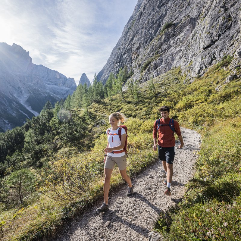 Here, in the Three Peaks Natural Park in the Sexten Dolomites, nature is not withholding with its wild and enchanting charms! Along the 4.5 km trail between Bad Moos and the hut "Talschlusshütte", you will be spoilt again and again with very special views. Colourful flower meadows at the foot of rugged rock faces. Dense larch forests against the unique backdrop of the Sexten Sundial.